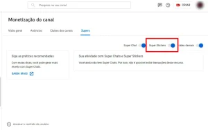 5. Na tela de “Supers” habilite as opções “Super Chat” e “Super Stickers”;
