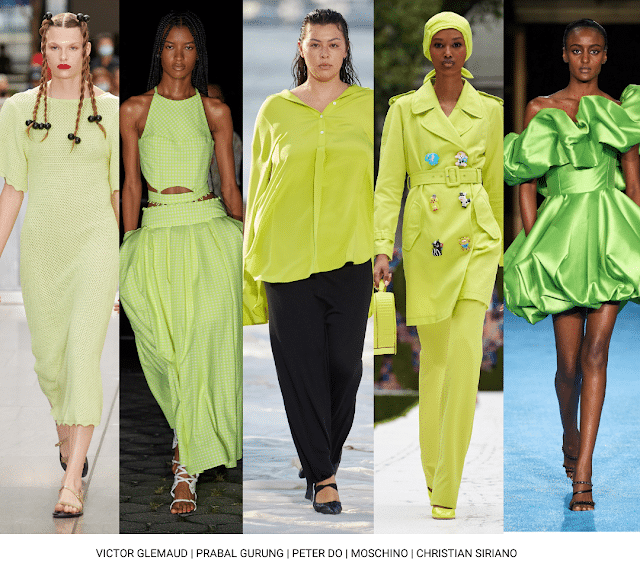 O verde já foi destaque nas passarelas do Nova Iorque Fashion Week deste ano, aparecendo em vários tons diferentes, inclusive o verde-crítico.