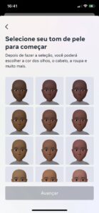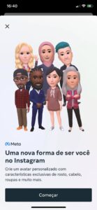 Exemplo de como criar seu avatar no instagram (clique no "hamburger"/configurações/avatar/começar/avançar)