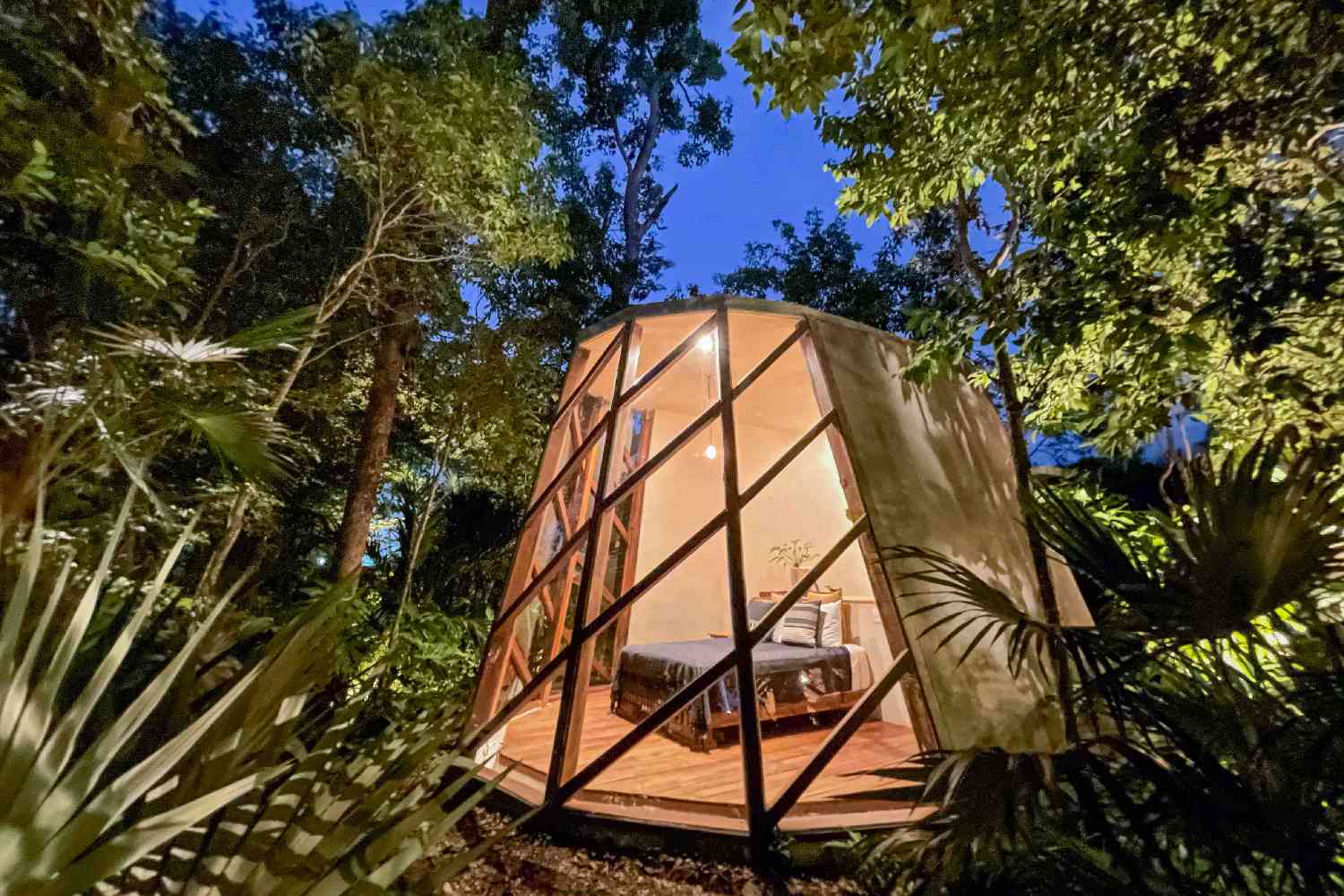 Para quem busca um contato íntimo com a natureza, essa hospedagem que fica em Tulum, no México com certeza pode oferecer. Ela tem um quarto com paredes de vidro, oferecendo uma vista de 18 graus para a selva, dando a oportunidade de apreciar toda a fauna da região sem sair da cama.