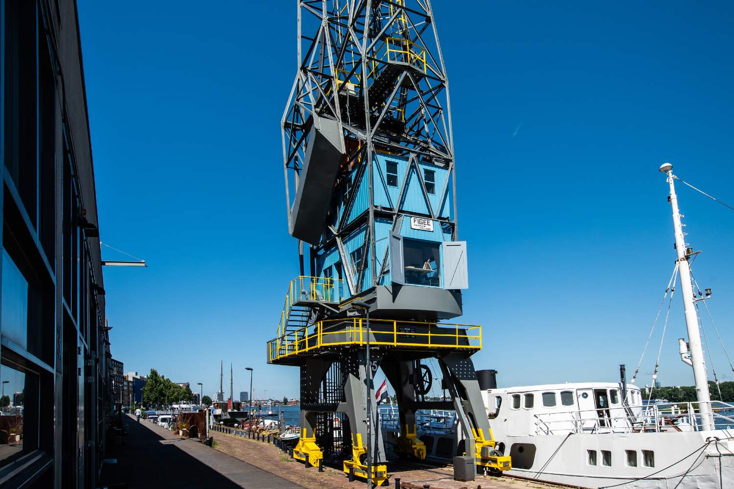 Em um um porto de Amsterdã, os hospedes podem se alojar em containers suspensos por um guindaste. A construção conta com três andares.