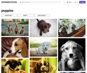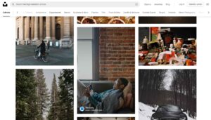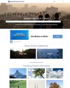 Possui filtro para imagens gratuitas e livres de direitos de imagem, mas costuma a ter muitas fotos repetidas e pouca exclusividade.
