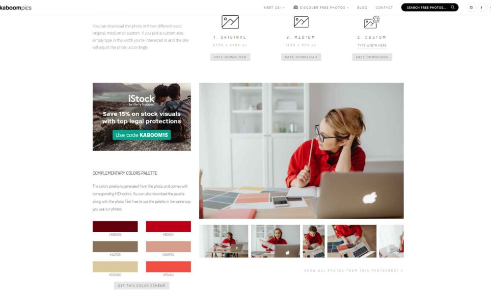 O Kaboom oferece além do estoque gratuito de imagens, a opção de baixar a paleta de cores de uma imagem para direção de arte. Definitivamente vale a pena conferir e favoritar o Kaboom Pics! salve para baixar imagens gratuitas de qualidade